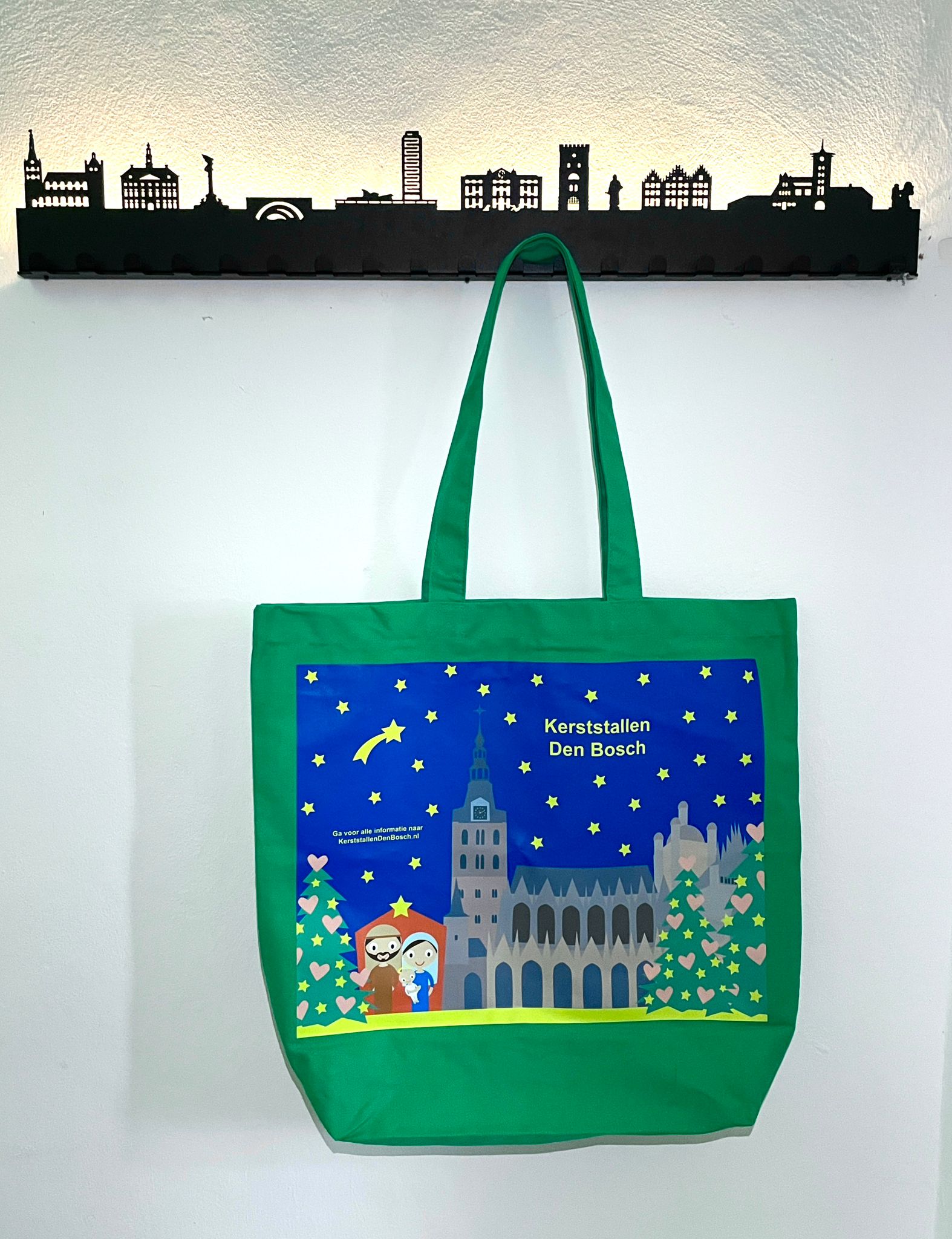 Deze toffe tas is verkrijgbaar in het lichtroze en in het kek-groen en kost €20. Wil jij ook het hele jaar Kerstmis? Of iemand verrassen met een super hippe tas? Stuur snel een email naar Info@KerststallenDenBosch.nl met je bestelling. Vermeld hierbij je adresgegevens en je mobiele nummer. Na de betaling via een tikkie ontvang je de tas thuis op de mat.